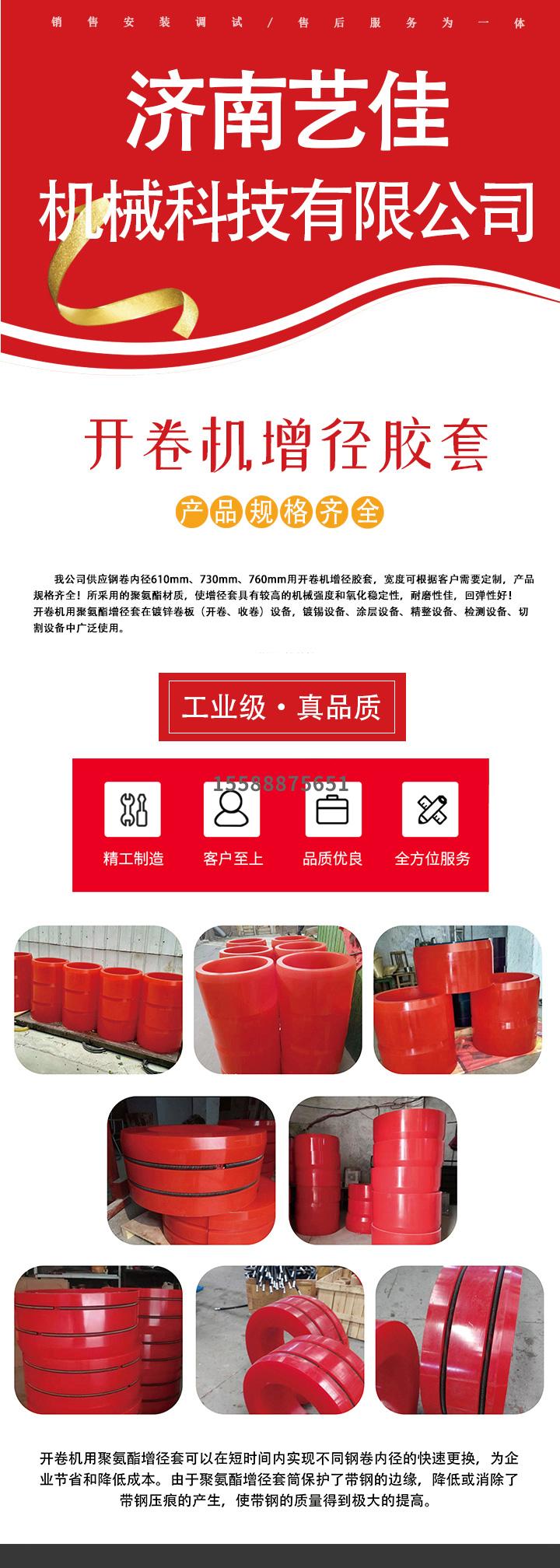 |  上一篇:濟南藝佳新增610變760開卷機聚氨酯增徑膠套 下一篇:鋼卷大內(nèi)徑橡膠墊圈尺寸由508擴大到760的聚氨酯增徑套哪里有售  |
